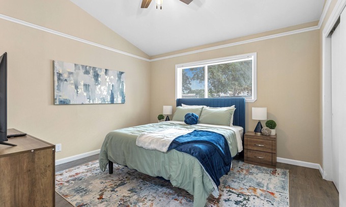 Your Houston adventure begins at this enchanting 4-bedroom estate. With 2 queen beds, 1 king bed, and 1 full bed, guests will have plenty of space to relax. The property features AC, WiFi, a washing machine, and more for your convenience. Enjoy the tranquil surroundings and modern amenities during your stay. Book now and enjoy everything this estate has to offer.
