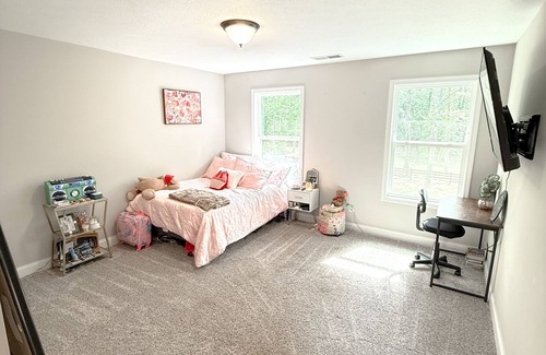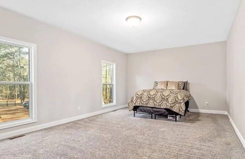 Escape to this farmhouse in picturesque Covington. This landscape property boasts 4 bedrooms, including 1 queen bed, 2 twin beds, 2 full beds, and 1 Full size Sofa Bed. With 4 bathrooms equipped with showers and hair dryers, guests will feel right at home. Enjoy the fabulous amenities in just driving distance of the Atlanta Braves Games or popular Amusement Parks like Six Flags and Stone Mountain Park, as well as popular movie sights and tours you can take from favorites such as The Vampire Diaries, In the Heat of the Night, Sweet Magnolias, and Dukes of Hazzard. Take an evening to visit the Covington Square and enjoy delicious dining at the famous Mystic Grill and Boutique shopping. Make your special getaway one for the books with a stay at our place.