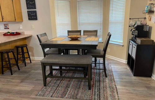 4 bedroom 2 bath home with large fenced yard. 2 full bathrooms with large soaking tub in master bath. Screened in backporch with smart TV, perfect for watching sports or doing a home work out. Every bedroom has smart TV, 4th bedroom has large desk for remote working space. Kitchen fully stocked with small appliances, air fryer, waffle iron, rice cooker, and GF grill. Washer/dryer access.