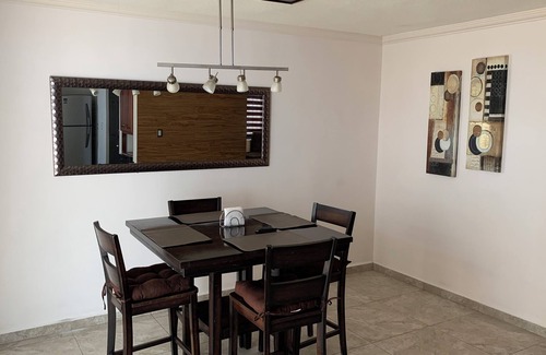 This 4-bedroom house in Ciudad General Escobedo is perfect for your escape. Gated and safe family oriented community. With 1 queen bed, 1 full bed, and 2 twin beds, guests will have a variety of sleeping options. The property also offers 3 bathrooms, each equipped with a hair dryer. Enjoy the tranquil surroundings and tremendous amenities like WiFi, heating, a washing machine, AC, and an iron. We look forward to welcoming you to our lovely retreat.