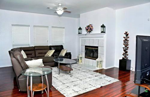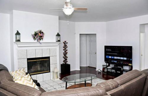 Spacious 4-bedroom house with AC, Wi-Fi superb in the Heart of Arlington, TX! offers accommodations in Johnsons Station, 18 miles from Fort Worth Convention Center and 21 miles from Dickies Arena. The property is around 10 miles from AT&T Stadium, 10 miles from Globe Life Park in Arlington, and 13 miles from Six Flags Over Texas. The vacation home also offers free Wifi and free private parking. The air-conditioned vacation home consists of 4 bedrooms, 3 living rooms, a fully equipped kitchen with a dishwasher and a coffee machine, and 3 bathrooms with a bath and a hair dryer. A flat-screen TV with streaming services is offered. There's also a seating area and a fireplace. Dallas Zoo is 25 miles from the vacation home, while Dallas Holocaust Museum is 27 miles from the property. Dallas-Fort Worth International Airport is 21 miles away.