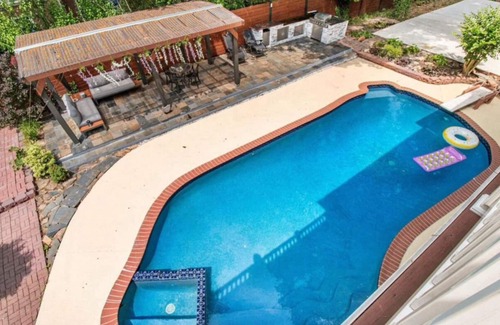 In summer, you relax in the backyard having a BarBQ, while kids playing on the trampoline or in the swimming pool. In winter, You can watch a movie 🎥 on a large screen in the basement while playing snooker.