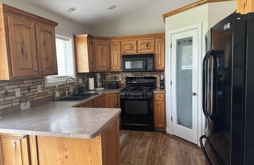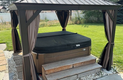 Nestled in Idaho Falls, this delightful house offers a tremendous stay for people wanting a safe, simple, peaceful, and quiet place for an adventure in and around Idaho Falls. With 5 bedrooms, 3 bathrooms, and a fitness equipment, this wonderful property provides all the comforts of home. Enjoy amenities like a hot tub, WiFi, 80" TV, and a washer/dryer during your stay. The home is next to a peaceful playground for the kids, and a basketball and pickleball court - truly a dream home for active people. We're happy to assist with any questions while you stay at our house.