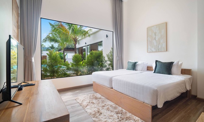 Unwind in Si Sunthon at this lovely villa. With 5 bedrooms and 6 bathrooms, this gorgeous property offers all the comforts you need for a pleasant stay. Enjoy amenities like WiFi, a hair dryer, and AC during your time here. Whether you're relaxing in the cozy living room or taking in the awesome views from the balcony, guests are sure to have a memorable experience at our villa in Si Sunthon. Enjoy your time in Si Sunthon at our villa.