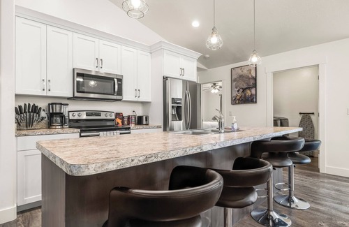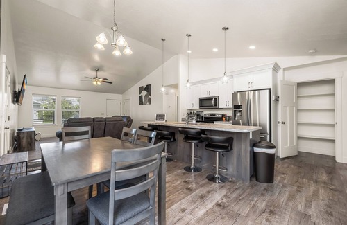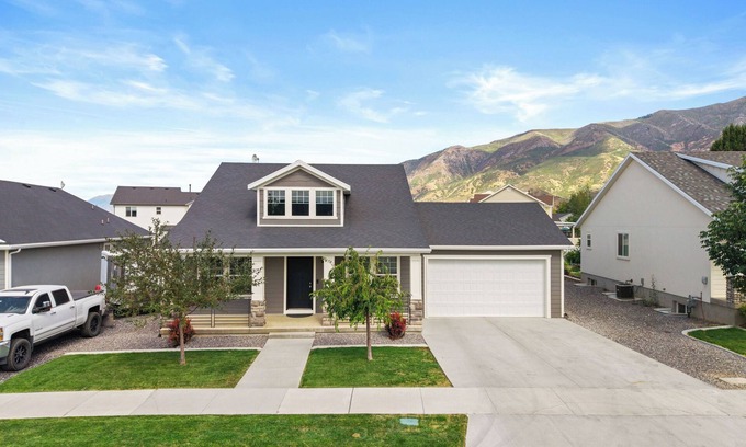This 5-bedroom house in Santaquin is perfect for you and your family to escape to quiet tranquility. With a king bed, a queen bed, a full bed, and 2 bunk beds, guests will find comfort and space to unwind. The 3 bathrooms are equipped with amenities like a bidet and jetted bathtub for a relaxing experience. Enjoy playing games, catch a workout in the fitness room, or relax and BBQ on the back patio. Plenty of vehicle and trailer parking offered in the two car garage, and in the gravel on the side of the house. Immerse yourself in the peaceful and soothing atmosphere of this excellent retreat. Fall in love with Santaquin and enjoy the magic it has to offer. Also, this is within walking distance of a pretty public park, 5 minutes away from I-15 access, 9 minutes from the Payson Temple, and less than an hour away from Salt Lake City, and Sundance Ski Resort.