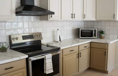 Step into a beautifully appointed home boasting modern amenities and stylish decor. The open-concept living area is perfect for gathering with loved ones, featuring comfortable seating and a large flat-screen TV for movie nights or catching the big game. Whip up delicious meals in the fully equipped kitchen, complete with stainless steel appliances, granite countertops, and ample space for cooking and dining. The space When it's time to unwind, head outside to your private backyard paradise. Take a refreshing dip in the sparkling heated pool, soak up the Arizona rays on a lounge chair, or gather around the fire pit for evening conversations under the stars. The covered patio provides shade and a cozy outdoor dining area, ideal for alfresco meals or morning coffee as you plan your day. Retreat to one of five well-appointed bedrooms, each offering plush bedding and ample storage space for your belongings. Bedroom 1: King bed Bedroom 2: Bunk bed Bedroom 3: Double bed Bedroom 4: Double bed Bedroom 5: King bed Located in Mesa, you'll enjoy easy access to a variety of attractions and activities. Explore the nearby hiking trails, tee off at world-class golf courses, or venture into downtown Mesa for shopping, dining, and entertainment options. Whether you're seeking relaxation or adventure, this stunning Mesa retreat is the perfect home base for your Arizona getaway. Book your stay today and start making memories that will last a lifetime! Other things to note **Please note that we have smaller unit attached to this house and is rented separately. The secondary unit has it's own private entrance. -Pool can be heated for $25/day during the length of stay. Pool cleaner come weekly on Tuesdays around noon -Driveway parking **Please do not plug any space heaters into the kitchen island or backsplash of kitchen walls. With the other appliances this may trip the circuit breaker**