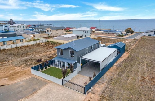 Experience luxury coastal living at 'Saltwater Breeze'—a 5BR retreat with breathtaking ocean views in Port Victoria. Enjoy a master suite with private balcony, three living areas, an outdoor fireplace, and secure boat/caravan parking. Ideal for families, fishing trips or group getaways. Just minutes from the beach, jetty, shops, and local trails—your perfect base to relax, entertain, and explore the Yorke Peninsula.