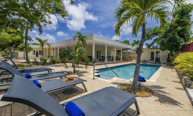 Indulge in this cozy 5BR 4.5Bath gem in the lovely area in the vibrant Oranjestad. Its contemporary design, high-end comforts, and spectacular outdoor space with a large swimming pool offer the perfect retreat from bustling crowds. Discover Aruba and its attractions, and return to our alluring oasis whenever you want to recharge.