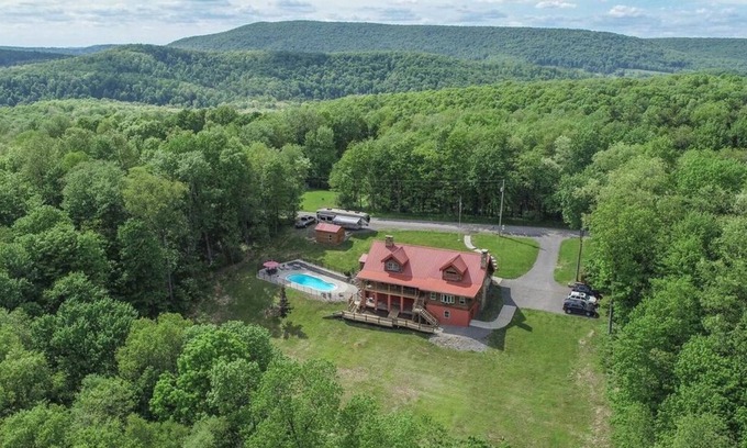 Spacious 6BR Log Cabin Retreat - Pool, Hot Tub, Stunning Mountain&Foilage Views | Cabin in Oakland