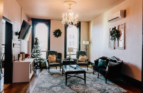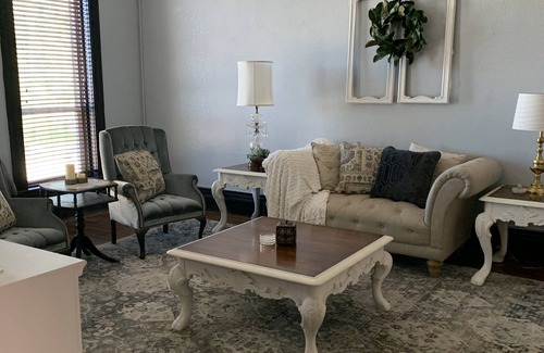 Enjoy our luxurious country chic 3 bedroom 2 bath fully updated loft. Located in the quiet, centrally-located downtown square of Hillsboro. We are located on the second floor. We are within walking distance of The Rustic Chandelier and The Eagle Wedding venues. We are only a 10 min from Lake Whitney and a short 25 min drive from the Silo District and Baylor. The loft is nothing short of relaxing with a clawfoot tub and 2 showers and perfect after a long day of shopping, 2 king size beds and crystal chandeliers all through out the property.