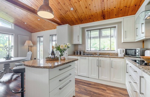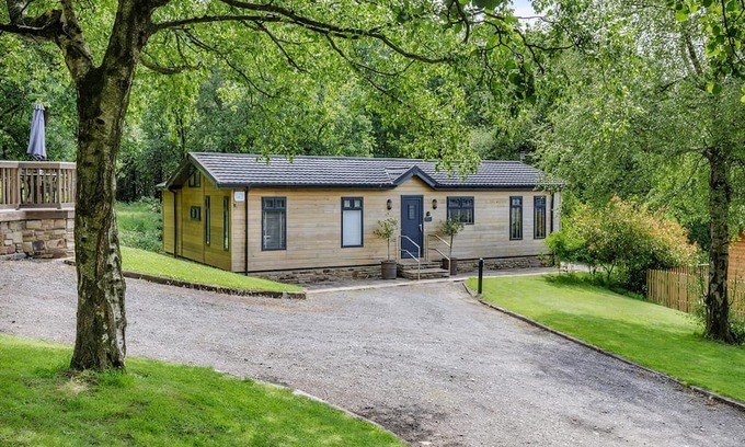 Spacious and luxurious lodge. Master king-size double with flatscreen Smart TV and en suite open plan bathroom with steps up to bath with shower. Dressing room. Spacious open-plan living/dining area with superior furnishings. French doors leading to secluded decking with outdoor hot tub and views of the nearby stream and woodland.. Charlesworth Lodges is part of our Autograph Lodge Holidays Collection and offers a real hidden gem! Nestling in peaceful woodland on a hillside, well off the beaten track, this exclusive group of eight lodges and stunning cottage command splendid uninterrupted views of Coombes Rocks on the edge of the magnificent Peak District National Park.