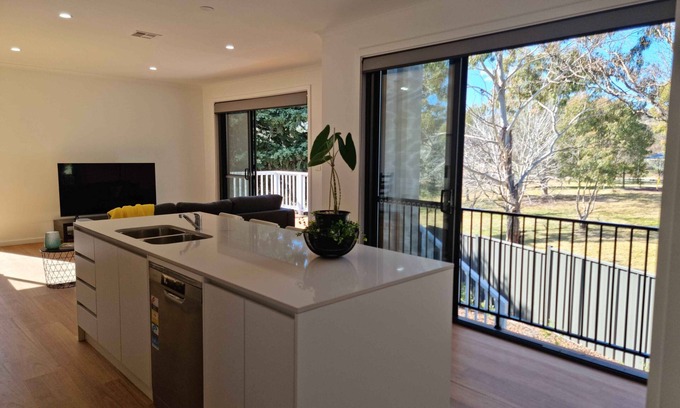 Lots of room for family and friends in a quiet suburb in south Canberra. Parkland surrounds the home and there are shops close by. Canberra city and the parliamentary triangle is only a 20 minute drive. The kitchen is fully equipped with everything you need to cook Including stove, oven and dishwasher.