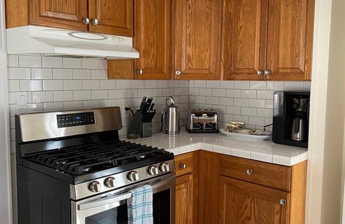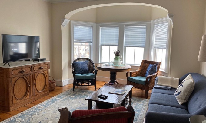Charming and newly updated second floor apartment, less than a 5 minute walk to downtown. Enjoy our incredible restaurants, shopping and more. Large living room with bay window, ample seating and flat screen TV, nicely equipped kitchen, large dining area for 6, and newly remolded bathroom.
