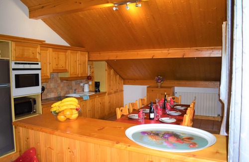 This lovely 4th floor apartment is spacious and well furnished, offering a high standard of accommodation for up to 8 people. Located in a small apartment block, the apartment is situated just 5 minutes walk from the centre of the resort and is perfectly positioned for the shops, bars and restaurants of the resort. Skiers can either walk to the centre of town and ski down the bottom part of the Doron piste or walk approximately 9 minutes to the main Chaudanne lift area (alternatively there is a bus stop 2 minutes walk from the apartment with free buses to various points in the resort).