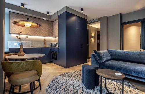 This expansive 3-bedroom apartment spans nearly 100 m², comfortably accommodating up to 5 guests, making it perfect for families or those seeking ample space and privacy. The inviting interior combines natural tones, modern tech, and cozy furnishings. It features a fully equipped kitchen, a roomy dining area, and a relaxing living space with a large SMART TV and Chromecast for your entertainment. Two bedrooms include double beds, SMART TVs, desks, and generous storage, while the third bedroom offers a single bed with a private sink and heated mirror. The bathroom has a shower and heated mirror, complemented by a separate toilet and a laundry room with washer and dryer. A 10 m² balcony invites you to unwind outdoors. Guests enjoy a welcoming lobby with complimentary tea and coffee, plus a free fitness room. Sustainability is prioritized with solar-powered electricity and heating. Paid on-street parking is available, with private parking on request. This eco-friendly apartment is ideal for comfortable short or extended stays.