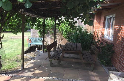 This approximately 120 square meters large and very quiet apartment offers sleeping places for 6 people in 3 rooms, everything you need for relaxation. A fireplace in the spacious living-dining area ensures cozy warmth in the winter, the large terrace with plenty of seats invites you to barbecue in the summer. Of course, a big barbecue is also available. In addition, in the spacious garden is still a heated garden shed (24 sqm) available. Even children will get their money, in the large garden is a children's playhouse with swing and slide.