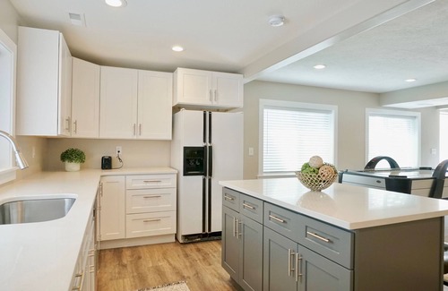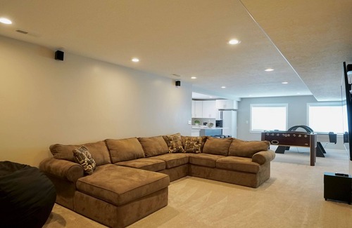 This is a newly finished basement apartment with a full kitchen and large bathroom. It has one king bed, one queen bed, and a futon. There is a separate outside entrance, inside a gated yard. We will give you a code for a lock box once the dates are booked. We ask that the back yard be left alone. This location is close to a Smith's Marketplace, Walmart, and gas station within a couple of miles. We are about 15 minutes from the freeway at the Pioneer crossing exit.
