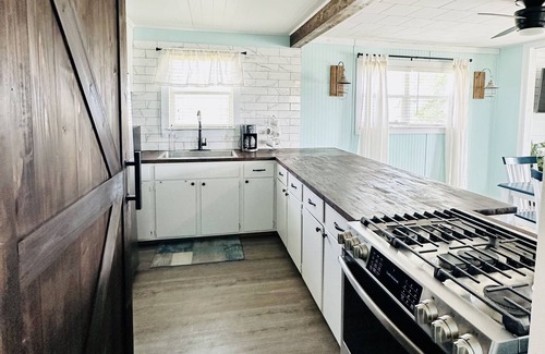 Breezy Shore Cottage located in Port O’Connor, TX offers a peaceful environment for its guests. Providing a fully equipped kitchen, with all the amenities to cook your meals. A cozy open floor plan in the living & dining area with plenty of seating. Take in the beautiful sunrise from the deck. The property sits on a spacious 1 acre lot. Centered within 5 minutes of the fishing docks, live venues, restaurants and shopping, and King Fisher Beach. Plenty of parking for your boat!