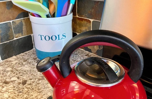 Open floor plan with two bedrooms, loft, & 2 1/2 baths; fully equipped kitchen (bring your own food ;-). Queen bed in master suite, queen bed in downstairs bedroom, two twin beds, one bunk bed, and twin futon in loft; sleeps nine. Washer/dryer, gas fireplace, high speed internet access, blu-ray disc collection with two blu-ray players; 5.1 home theater system & two flatscreen TVs. Sitting areas in great room and upstairs loft. Wrap-around, 600 sq. ft. covered deck overlooks the sunset. Gas grill, gas firepit, & outdoor seating allow you to relax & watch the stars come out with dinner & a glass of wine.