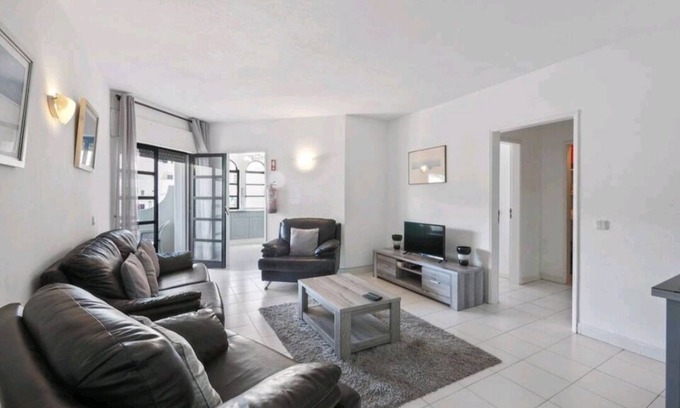 A welcoming 2 bedroom, 2 full bathroom apartment with a fully equipped kitchen, spacious living area and balcony facing the city. The master bedroom has a queen bed and the second bedroom has 2 single beds. The building is in a condominium complex that has a shared pool and elevator lifts. It is an easy, short walk to the beach with a pharmacy and multiple shops, cafes, bars and restaurants along the way. The unit also come with a real wood burning fireplace as well as AC /heating units in both bedrooms and in the living room.