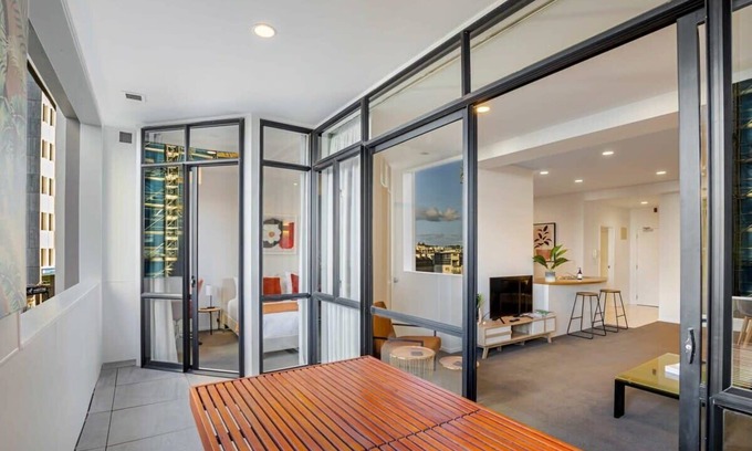 This fabulous spacious two bedroom apartment will be a great choice for your stay, whether it's work or play. The perfect location of this boutique character building means only a short stroll to Britomart, the waterfront, Queen Street, Spark Arena, ferries and more! The interior is stylish with a fully functional kitchen, super fast Wi-Fi, Smart TV, AC, super comfy queen beds, quality bathroom amenities, and other special touches are all yours to enjoy. Ideal for short or longer stays.