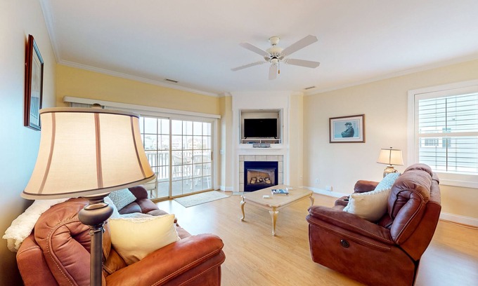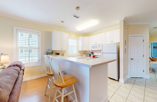 The living room's seating and smart TV lend themselves to cozy viewings with your loved ones, whereas the large dining table is perfect for family-style meals! Nautical charm flows effortlessly through each of the bedrooms. Off the primary bedroom, enjoy having access to a large bathroom with a soaking tub and walk-in shower. The primary bedroom also has direct access to one of the balconies. A private washer/dryer and central air-conditioning round out the marvelous amenities at your fingertips!