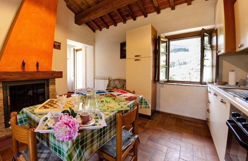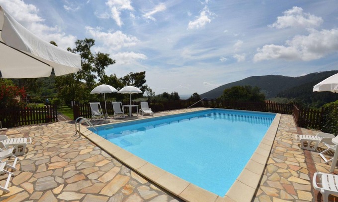 Situated in the heart of Buti, this spacious two-storey property offers a comfortable and convenient base for exploring Tuscany. The ground floor features an open kitchen, a living/dining room, a double bedroom, a bunk bedroom, a bathroom, and a veranda. Upstairs, you'll find a second open kitchen, another living/dining room, a double bedroom, a bunk bedroom, and a second bathroom. The property boasts a shared garden with outdoor furniture, a barbecue area, parking facilities, and a swimming pool (13 x 6 m), open from May 1st to September 1st. It's just 100 meters from local restaurants, making dining out easy and enjoyable. The property is also pet-friendly, ensuring that your furry companions can join you on your Tuscan getaway. Buti is a charming village nestled on the eastern slopes of Monte Pisano, offering a blend of natural beauty and rich history. Visit the nearby Medici Villa, explore the ancient Castel Tonini, or hike the scenic trails of the Monti Pisani. For a taste of local culture, try the traditional trippa alla butese at one of the local eateries. With its proximity to Pisa, Lucca, and the Tyrrhenian coast, Buti serves as an ideal starting point for discovering the treasures of Tuscany.