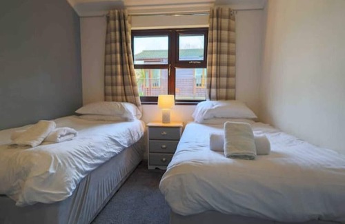 Escape to the modern comforts of our three-bedroom cabin, offering a spacious living area, a private outdoor hot tub, and a large, fully enclosed patio with garden furniture. Situated just a short walk away from the enchanting woodland trails, outdoor activity area, and fishing lakes, this cabin provides a tranquil retreat. With sleeping arrangements for up to six guests across three comfortable bedrooms (one double and two twins), it's the perfect getaway for families or friends. The lounge is a haven of relaxation, featuring ample seating, a stylish electric fireplace, a 50" Smart TV with Netflix, and even a Play Station for entertainment.