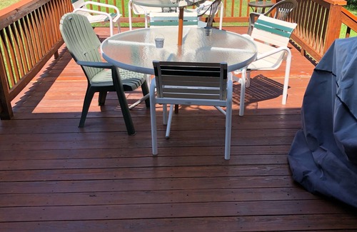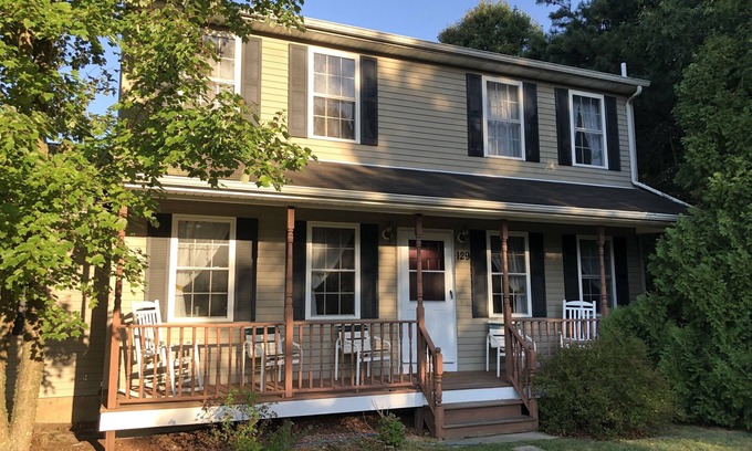 Lots of room to spread out in this big colonial. Two living rooms allow simultaneous activities. Play games or watch a movie in one, have a quiet chat or read a book in the other. Plus there is a front and back deck. And lots of lawn to find a quiet corner to read a book or take a nap. Did you really come here with eight other people? You’ll never know it until you meet up for dinner around the barbecue!