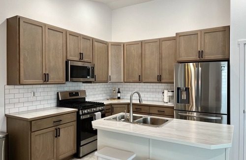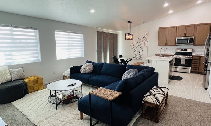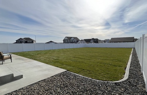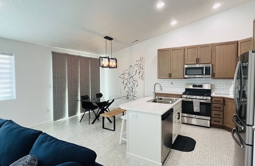 3 Bedroom, 2 bathroom home centrally located. Close to resturants, stores family and friends. Keyless entry, home includes full size washer and dryer, 2 car garage, wifi, and tv with netflix + Hulu. This new beautiful rambler is 1416 sq ft, + 2 car garage is a perfect stay for families with children and pets and for anyone needing privacy. Kitchen is fully equiped for cooking and fridge has filtered water and ice dispenser. Washer and dryer is included.