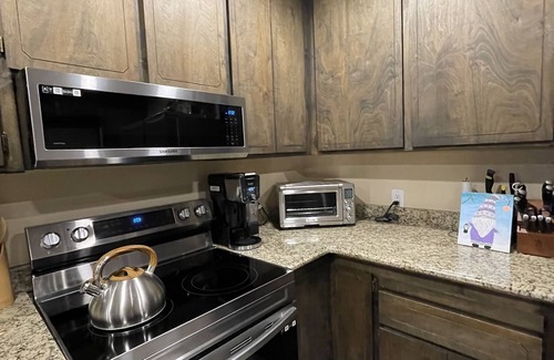 Foosball table, top of the line multi game arcade with over 18,000 games. Brand new 30k btu heaters downstairs and upstairs on top of the living room fireplace. We also have portable heaters for the extra cold nights.