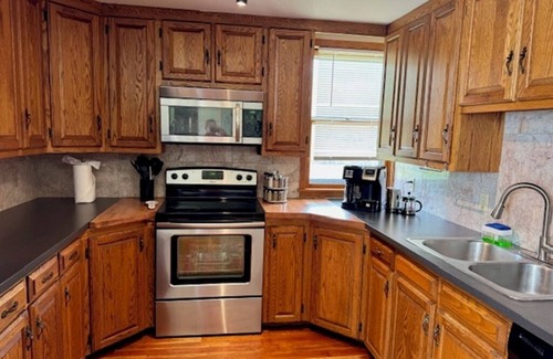 Inside, you'll find a fully equipped kitchen, cozy living areas, and plenty of space to gather, play games, or simply relax. With multiple bedrooms and flexible sleeping arrangements, the home is a family-friendly, comfortable accommodation for getaways.