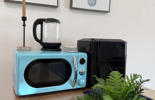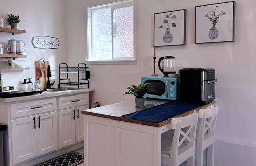 Your suite is a spacious 1 bedroom/1 bath with kitchen area. Air-Fryer and Microwave are available to use. The space has common laundry room with the host residence. Access through your own private entrance and make yourself at home in our freshly furnished unit. Amenities include Wifi, clean linens and towels, microwave, mini-fridge, air-fryer, electric kettle, complimentary coffee and tea, and self check-in. Please feel free to take-out and dine in using the provided dishes and silverware. Please clean up the dishes and put your garbage in the front door before you check out.