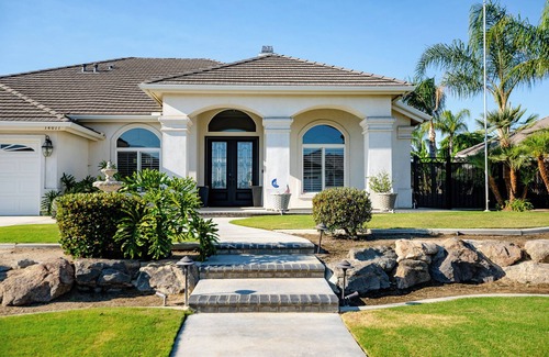 Get together with family and friends in this spacious custom home in beautiful NW Bakersfield! With plenty of seating indoors and outdoors, you'll enjoy relaxing around the pool and spa, grilling on the patio, playing pool, or winding down with a great movie. The house is setup with Smart TV's in each of the bedrooms, the living room, and the game room, a fully loaded kitchen, and loads of amenities. Perfect home away from home!!