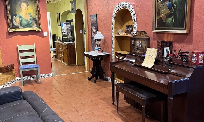 This cozy home is close to everything and has plenty of room for an enjoyable visit to our lovely town! Get extra space and amenities that are rarely found in Old Bisbee. Find yourself in the heart of the historical part of town, just a few minutes from restaurants, shops, and entertainment. Park two cars right in front--no stairs to climb! Features fast wifi, 2 bedrooms, 2 full bathrooms, multiple common areas, laundry, a dining nook, a 55' TV, a front patio with BBQ, & more. Quiet & comfortable. No access to backyard.
