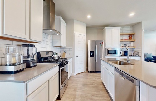 Welcome to this modern and spacious house located in a gated community in Houston, TX. This home is equipped with top-notch amenities to ensure a comfortable stay for guests. With three 65-inch Smart TVs available for entertainment, including one in the living room, another in the primary bedroom, and the last one in the upstairs common area, you'll have plenty of options for movie nights or catching up on your favorite shows.