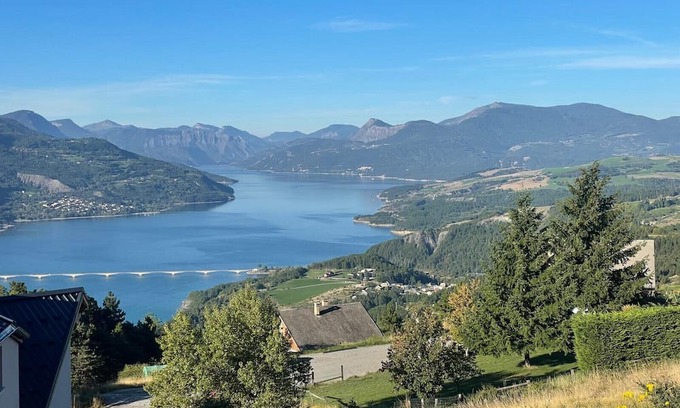 Discover this beautiful house in Puy-Sanières, a true haven of peace ideal for a relaxing stay. Enjoy a breathtaking view of the lake of Serre-Ponçon and the peak of Morgon, perfect for mountain lovers. With an area of 120 m 2, this accommodation can accommodate up to 7 people.