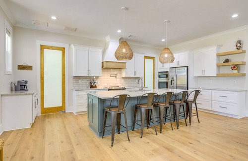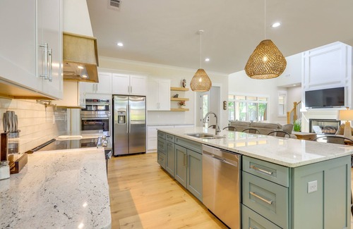 A fun-filled group getaway awaits at this Milledgeville, GA, vacation rental! Boasting a stunning location on Lake Sinclair, this 5-bedroom, 4-bathroom home is ideal for enjoying outdoor activities and quality time with your loved ones. Fill sunny days with plenty of fishing, boating, and swimming before retreating inside to unwind in the modern interior. Top off your evenings by dining and watching TV on the screened porch, or head back out to gather around the fire pit together!
