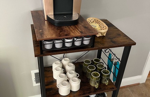 Enjoy your morning coffee or your favorite book in our spacious sun room. Listen to some tunes while working at the desk as the sun rises and peeks through the windows.