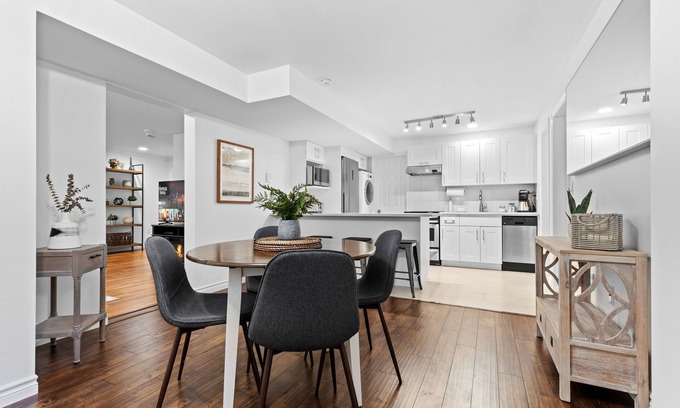 Guests have a designated stall in the back alley (2 spots available upon request). The spaces are generously sized and can accommodate both cars and trucks. Additional vehicles can be parked on the street with ease.