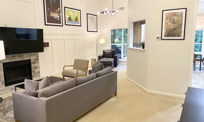 Enjoy your downtime with the family or a friend in our stylish, newly remodeled, second home. Just a few minutes to the conveniences of Peachtree City and 20 minutes to Trilith Studios, our home is nestled at the end of the road in a quiet neighborhood. An open living and dining area make quality time easy. 2 bedrooms, 2 baths, and dedicated office offer the same for privacy. A home away from home for work or for play.