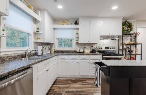 Enjoy the tranquil ambiance by stepping out on the gorgeous patio and the lovely front porch, offering a private outdoor setting where you can relax, have hours of fun, and prepare a tasty BBQ. As the sun goes down, grab a pack of marshmallows and light up the fire pit!