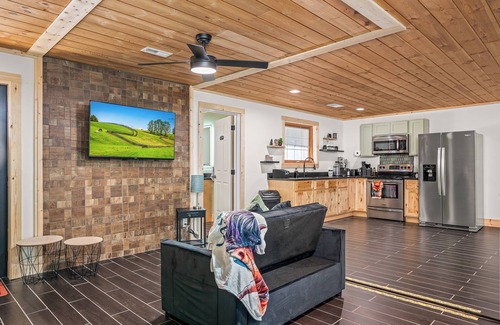 The lounge areas take center stage in all three apartments, offering a vibrant and inviting ambiance for unwinding throughout your Tennessee escapades. Please note that the first apartment living room is on its upper floor.