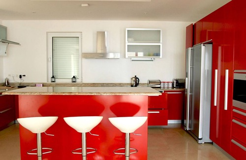 Villa Cruz has a breathtaking view out to the Adriatic Riveria. The large open plan living area and well equipped kitchen with cutlery and crockery for indoor and outdoor dining, microwave, dishwasher breakfast bar and large dining table and are perfect for groups and families.