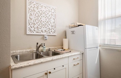 The apt has a beautiful and trendy farmhouse decor, large living room and dining area, large bathroom and a private bedroom with a queen size bed. There is also an open area in the back with a bunk bed. The living room also has a brand new sofa bed. The new kitchen includes a stove, refrigerator, microwave, Keurig and coffee station. Private entrance through the main front door and a great location for exploring Missoula. Must climb 6 steps to front door. Not handicap accessible.