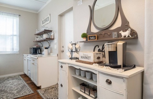 You will have the entire main floor of our old vintage church for your use. It includes the living room, dining area, kitchen, bedroom and bathroom as well as the shared yard area.