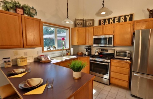 Three bedrooms and two and a half bathrooms, plus a queen-size sleeper sofa in the TV den for extra guests. Well-appointed kitchen and adjoining dining room with seating for up to 8 guests. Excellent private outdoor space for gathering and BBQ's.