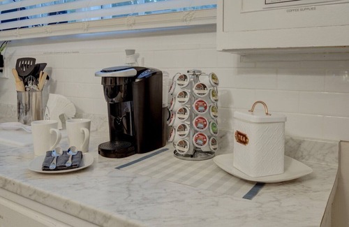 The kitchen provides all of the necessities during your stay. We offer coffee makers, blender, tea pot etc.