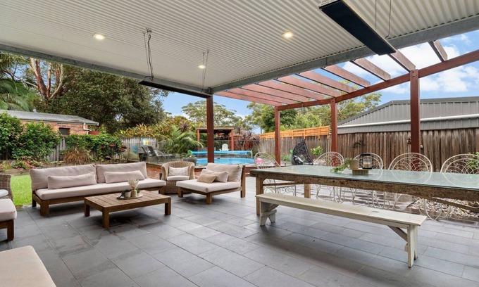 Speckled Nest at Hawks Nest is a luxurious coastal retreat designed for relaxation and connection. With spacious open-plan living, seamless indoor-outdoor entertaining, and an inviting pool, it's the perfect getaway for families and friends. Featuring four king bedrooms, a kids' bunk/rumpus room, and 2.5 bathrooms, there's plenty of space for everyone to unwind. Located just 200 meters from Jimmy's Beach, you'll be moments away from pristine sands and crystal-clear waters.