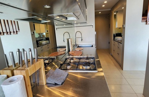Modern kitchen with gas cooking, dishwasher, microwave, Nespresso coffee machine
